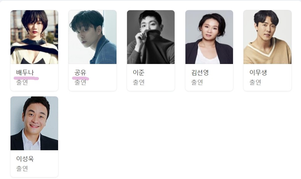 배두나와 공유가 주연을, 그 외에 이준, 김선영, 이무생, 이성욱 등이 특수 대원으로 함께 출연하였습니다.