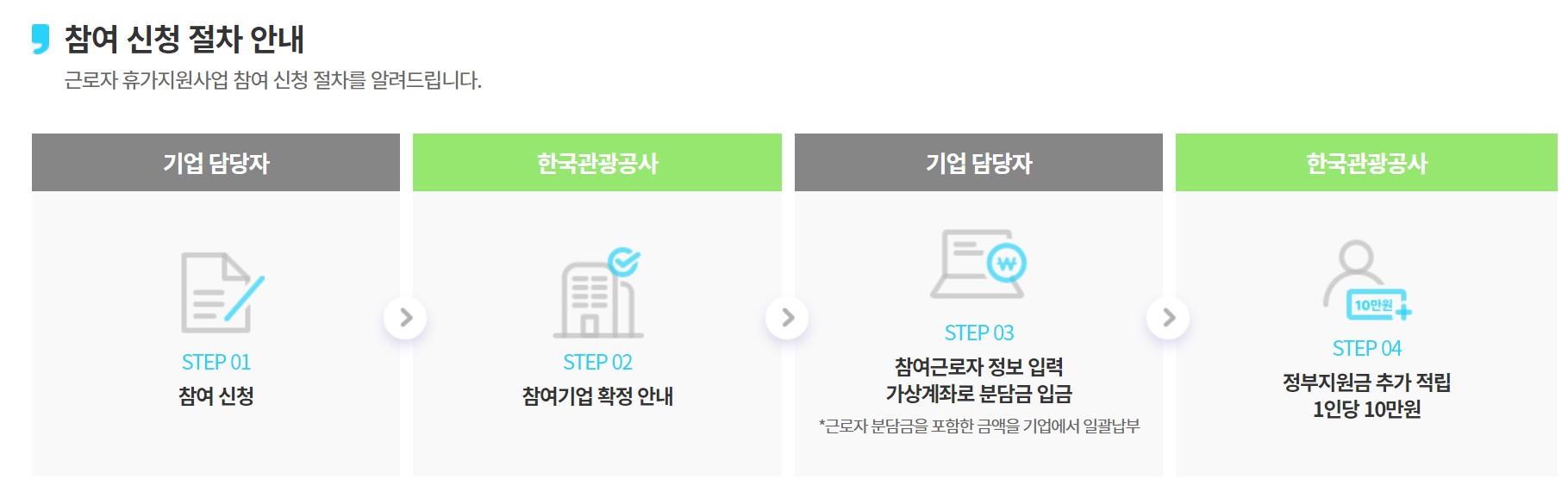 근로자 휴가지원 사업 바로가기로 들어가시면 내용 확인 및 신청이 가능하십니다.