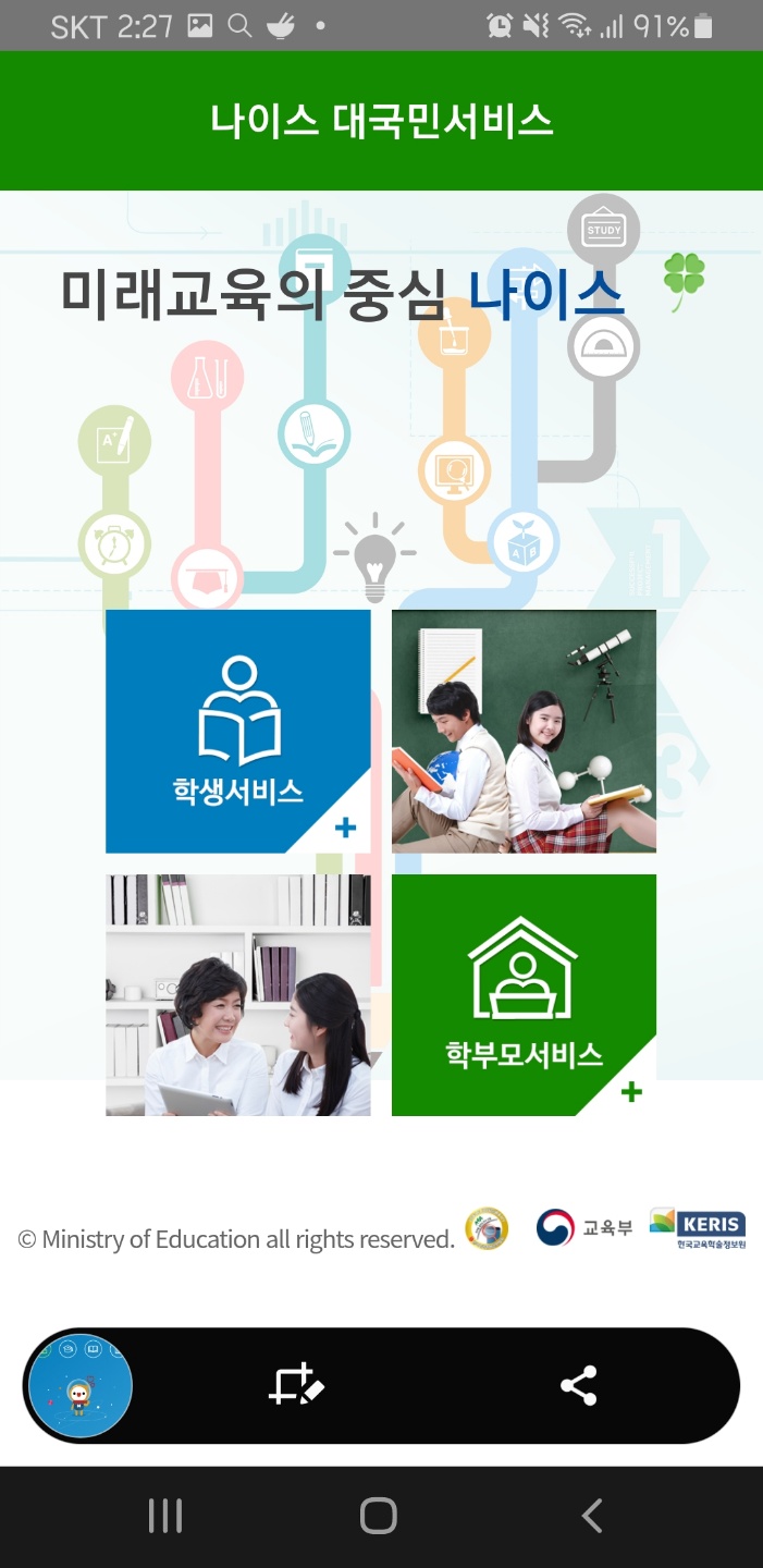 구글 플레이 스토어에서 ‘나이스 대국민서비스’를 검색해서 깔면 되는데 접속보다 훨씬 빠릅니다