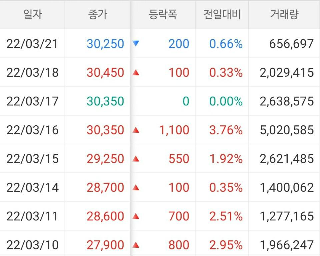 아무래도 많은 주가가 오르는 이유는 엔데믹과 관련된 여행과 여가에 관한 주식의 주가입니다. 여행, 외식업, 음식료, 의류, 뷰티등 외부 활동이 늘어나면서 보복 소비가 폭발 할 것으로 예상되기 때문입니다. 물론 기대심리가 다 반영 되지는 않고 조심스럽게 반영 되는 모습입니다.