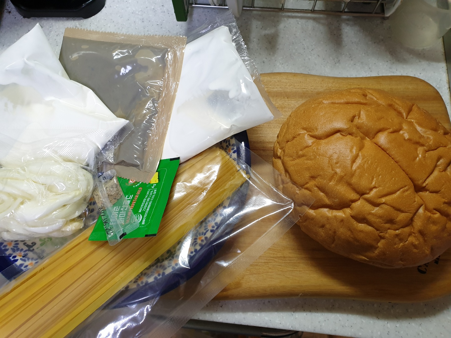 그래도 완제품 보다는 신선도나 맛이 더 나아서 가끔 해 먹는데 이번에는 특별한 메뉴로 빠네 파스타를 선택했어요.
