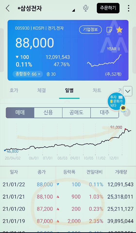 그래도 역시 실적이나 삼성 전자에 대한 신뢰도는 높으므로 가지고 있는 주식에 대해 걱정을 하고 있지 않습니다. 다만 주가가 많이 오른 상태라 더 살 욕심은 부리지 않기로 했습니다.