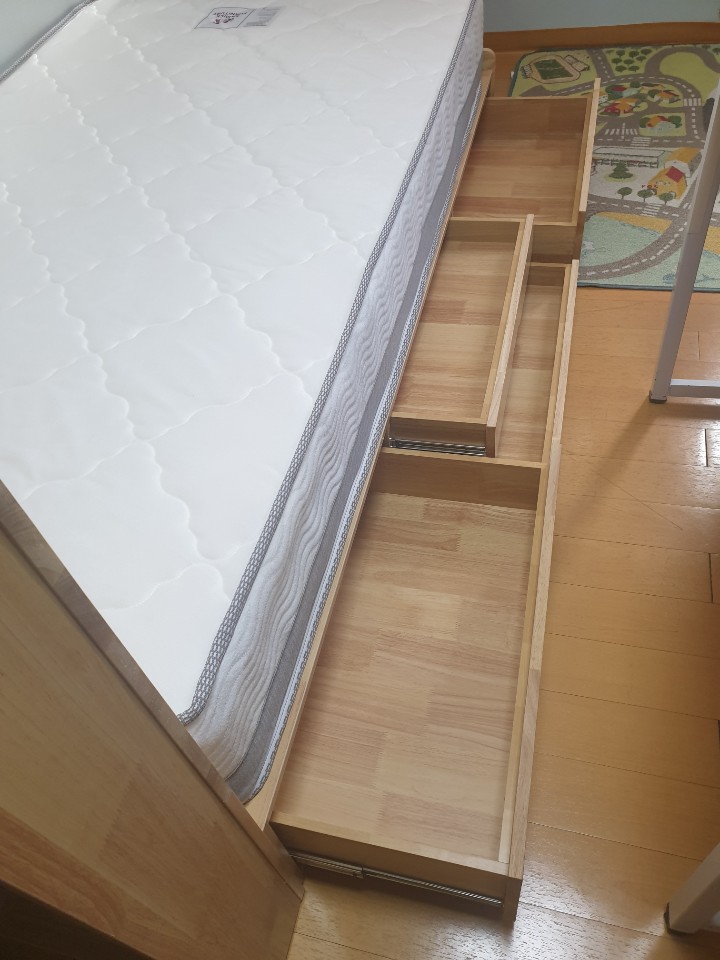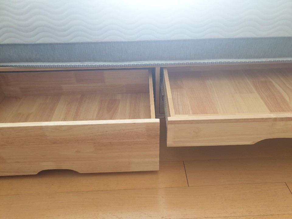 1) 반으로 나뉜 침대의 한쪽은 서랍으로 되어 있습니다.