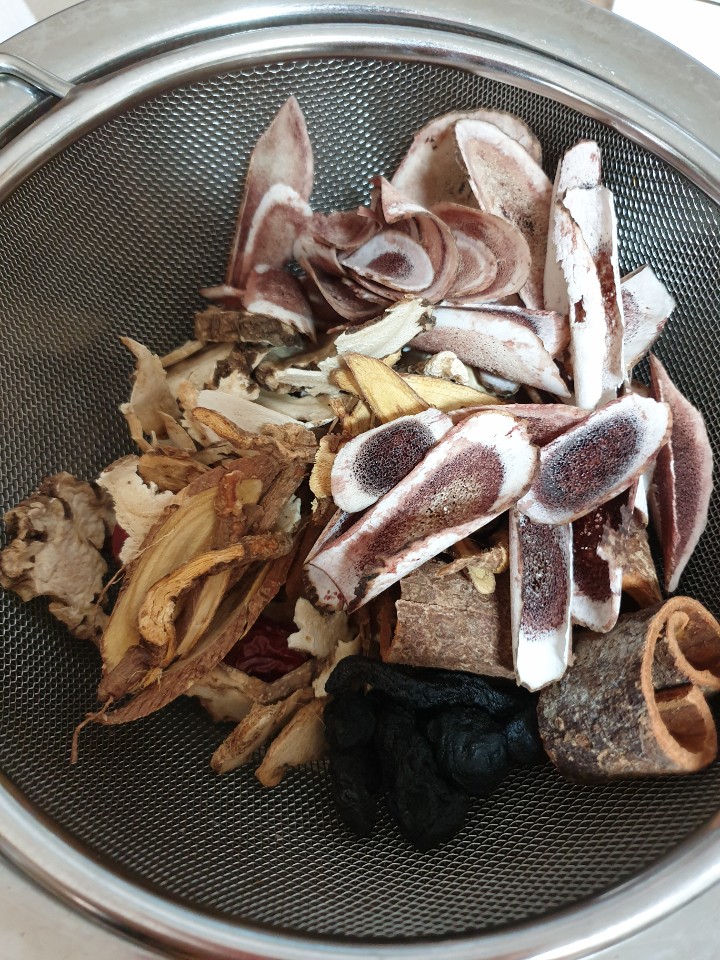뭔가 좋은 걸 더 포함시키고 싶었는데 녹용은 다음으로 미루고 이번엔 녹각을 넣기로 했어요. 녹각도 부위에 따라 가격 및 효능이 달라서 저는 분골과 상대로 구입했어요.