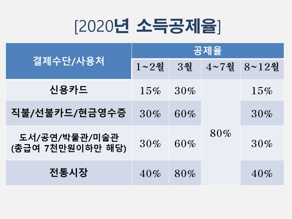 1) 2020년 소득공제율 높임