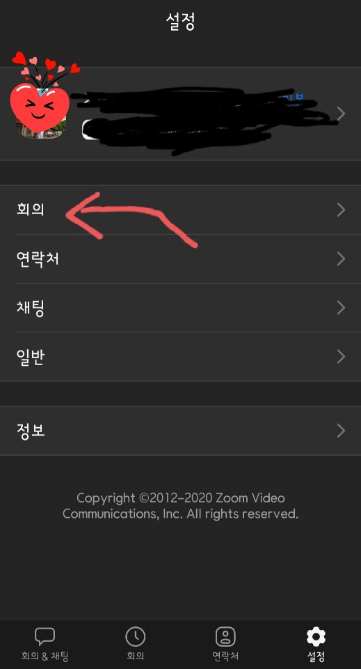 4) 설정에서 회의로 들어갑니다.