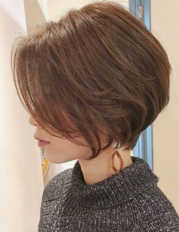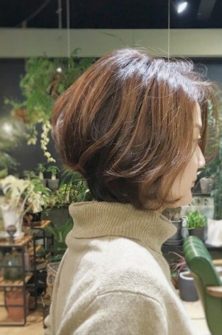 뒤통수를 입체감 있게 완성한 보브컷은 컷이라 해도 세련되어 보이고 단순 쇼트커트에 비해 여성미가 가미되어서 중년 여성에게도 잘 어울리는 헤어스타일입니다. 뒤통수를 동그랗게 말리고 앞머리를 뱅을 적당히 하면 한층 발랄해 보이고 어려 보이는 효과도 있죠. 단, 손질을 잘하셔야 하고 컷 머리이기 때문에 미용실에 자주 가야 한다는 부담이 있습니다.
