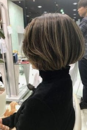 머리숱이 적으신 분은 보브컷을 하실 때 단발 보브컷으로 길이는 턱선에 맞췄을 때 좀 더 숱이 풍성해 보이는 효과가 있어요.