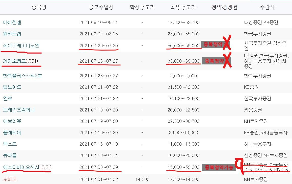 균등배정 중복청약의 기쁨도 잠시 이제 더 이상 중복 청약이 되지 않은데요. 그래도 아직은 sd바이오센서와 크래프톤 처럼 중복 청약이 되는 공모주도 있고 대어급 공모주들도 계속 상장 대기 중이니 7월 공모주도 한 번 알아보겠습니다.