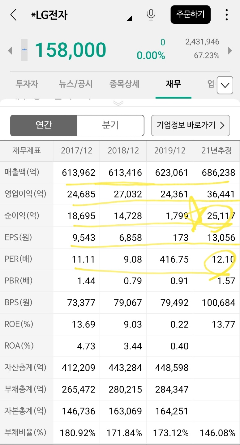 증권가는 코로나19 백신 접종 확대 등에 따른 시장 회복과 경제 성장에 대한 기대감으로 LG전자가 올해도 최대 실적을 달성 했다고 보고 있으며 프리미엄 가전과 TV 수요는 계속해서 늘고 전장사업도 하반기 이후 흑자 전환하며 순항할 것으로 예상하고 있습니다.